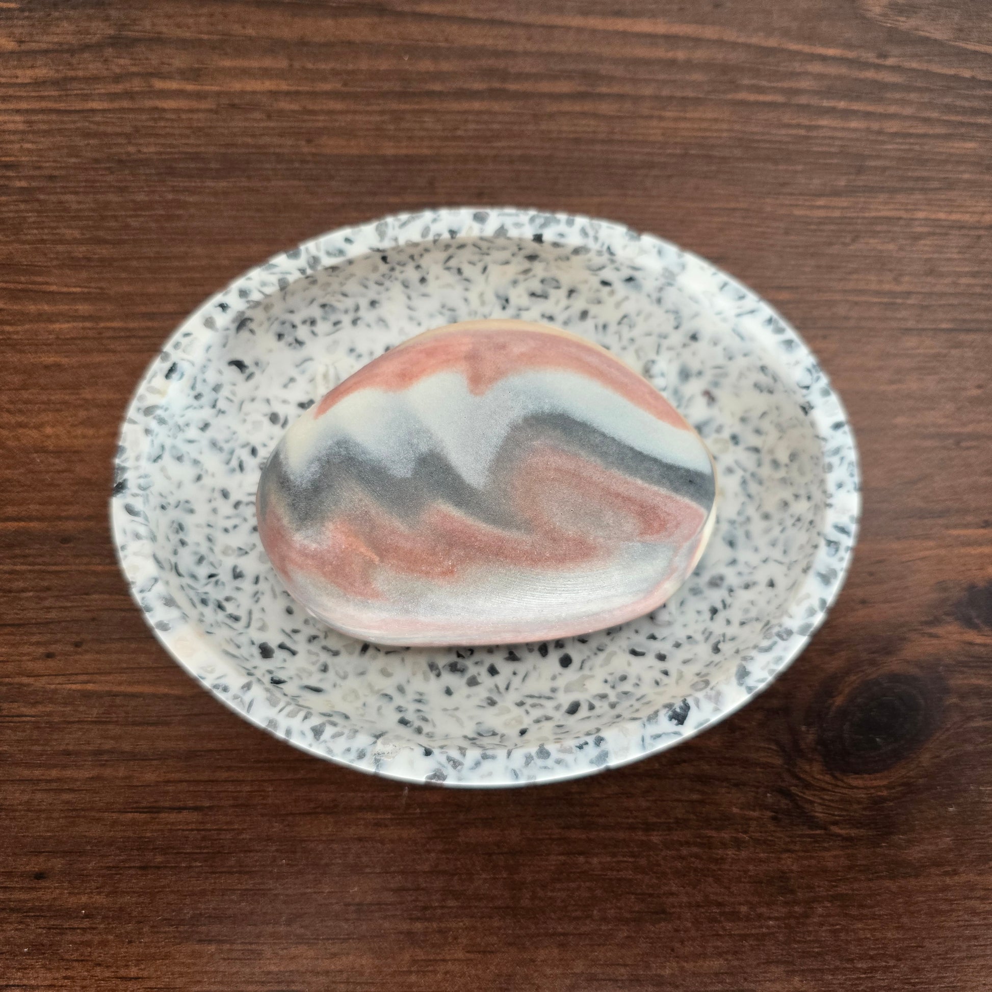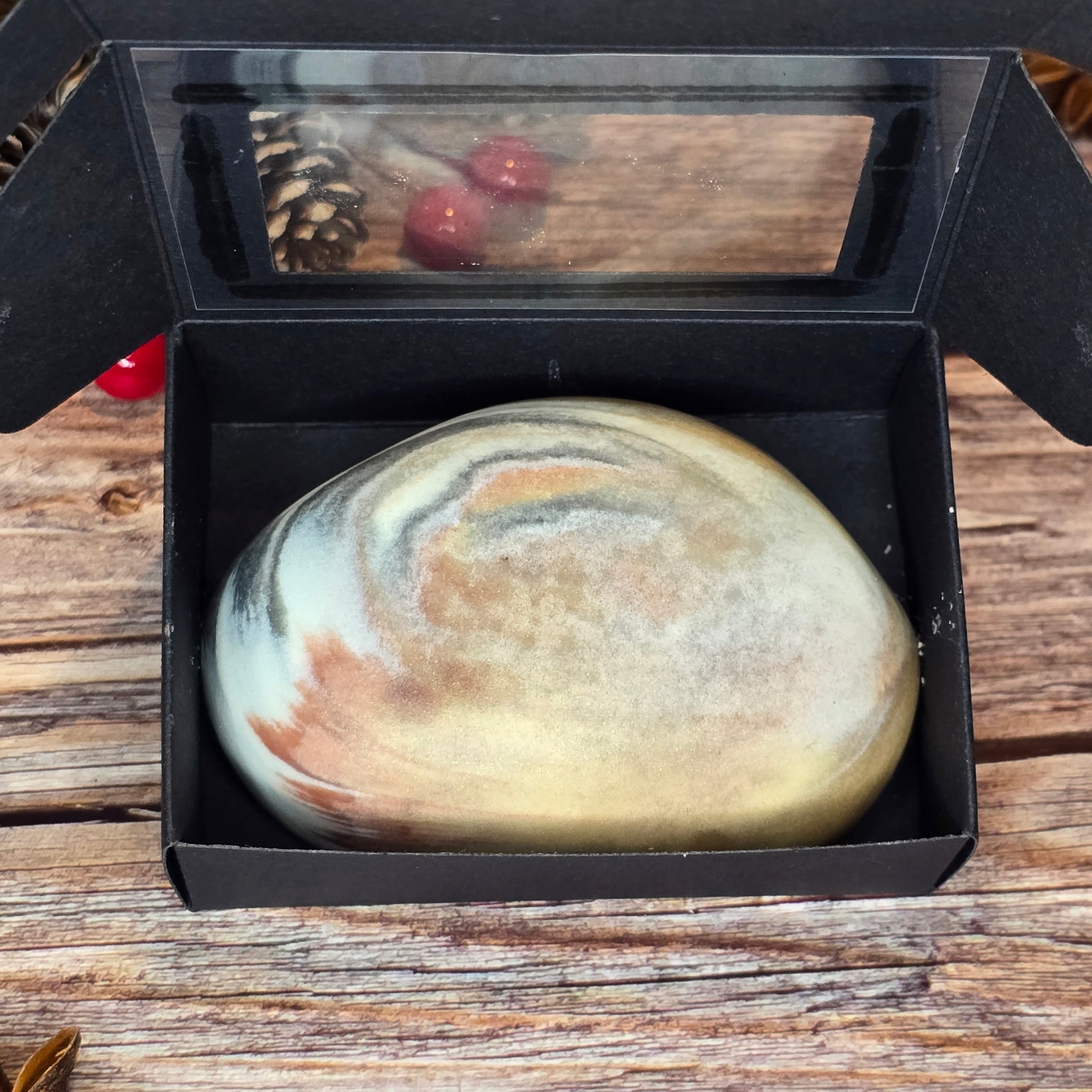 This stone soap is a natural handcrafted bathing essential. Perfect for skin care, it offers a unique bathing experience. 🧼 Each soap is handcrafted, ensuring a personalized experience.
